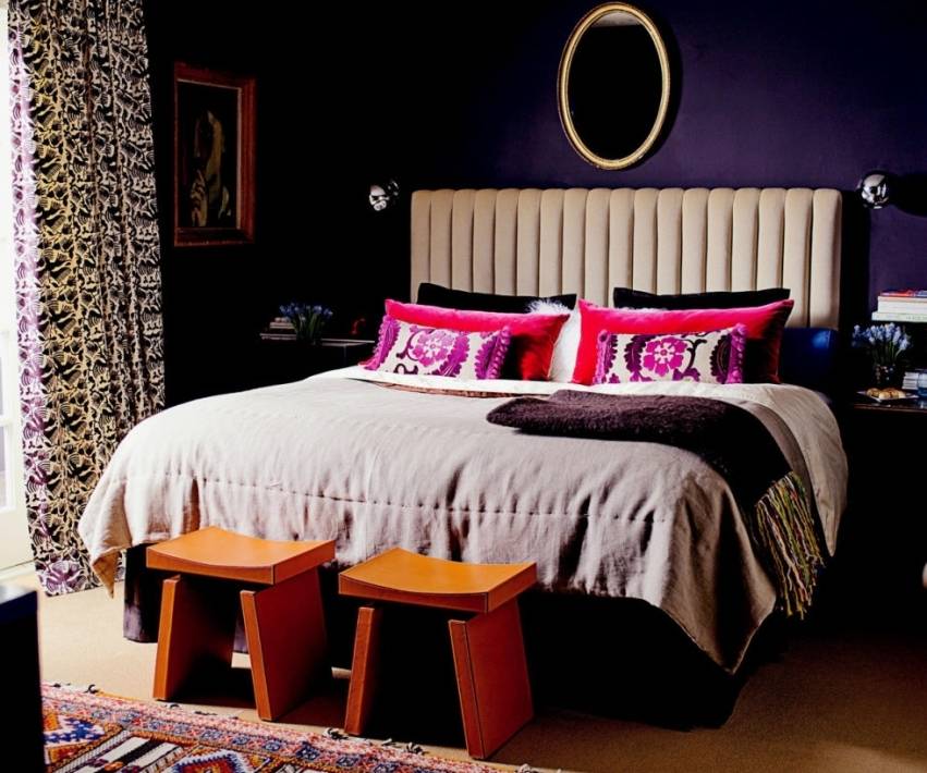 яркие узоры могут присутствовать на текстиле, подушках, шторах, на пледе, в других деталях;