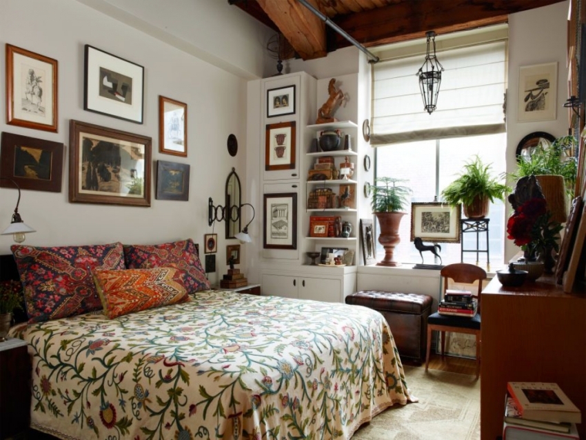 Минимальный набор мебели и аксессуаров — дизайн очень маленькой спальни, фото