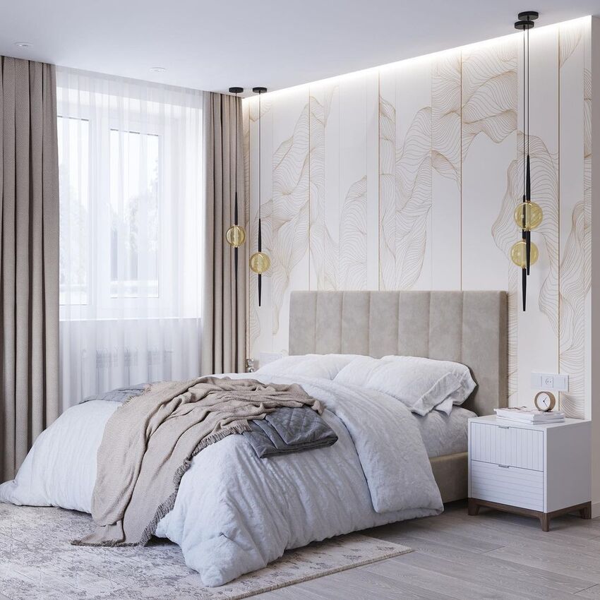 Цветовая гамма для спальни должна быть спокойной, комфортной, чтобы человек смог максимально расслабиться. Актуальным будет не только белый, но и светло-розовый, сиреневый, холодный голубой, кремовый, молочный нейтральный цвет. Грамотное использование светлых тонов может изменить интерьер помещения любого размера: