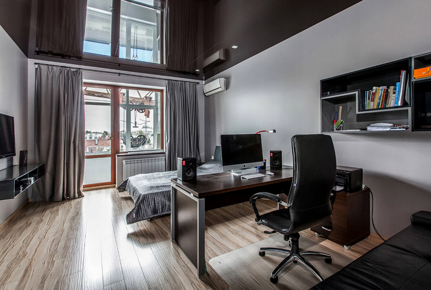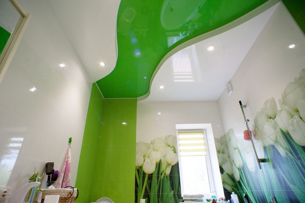 Глянцевый потолок – отличное решение, если хочется расширить комнату по высоте