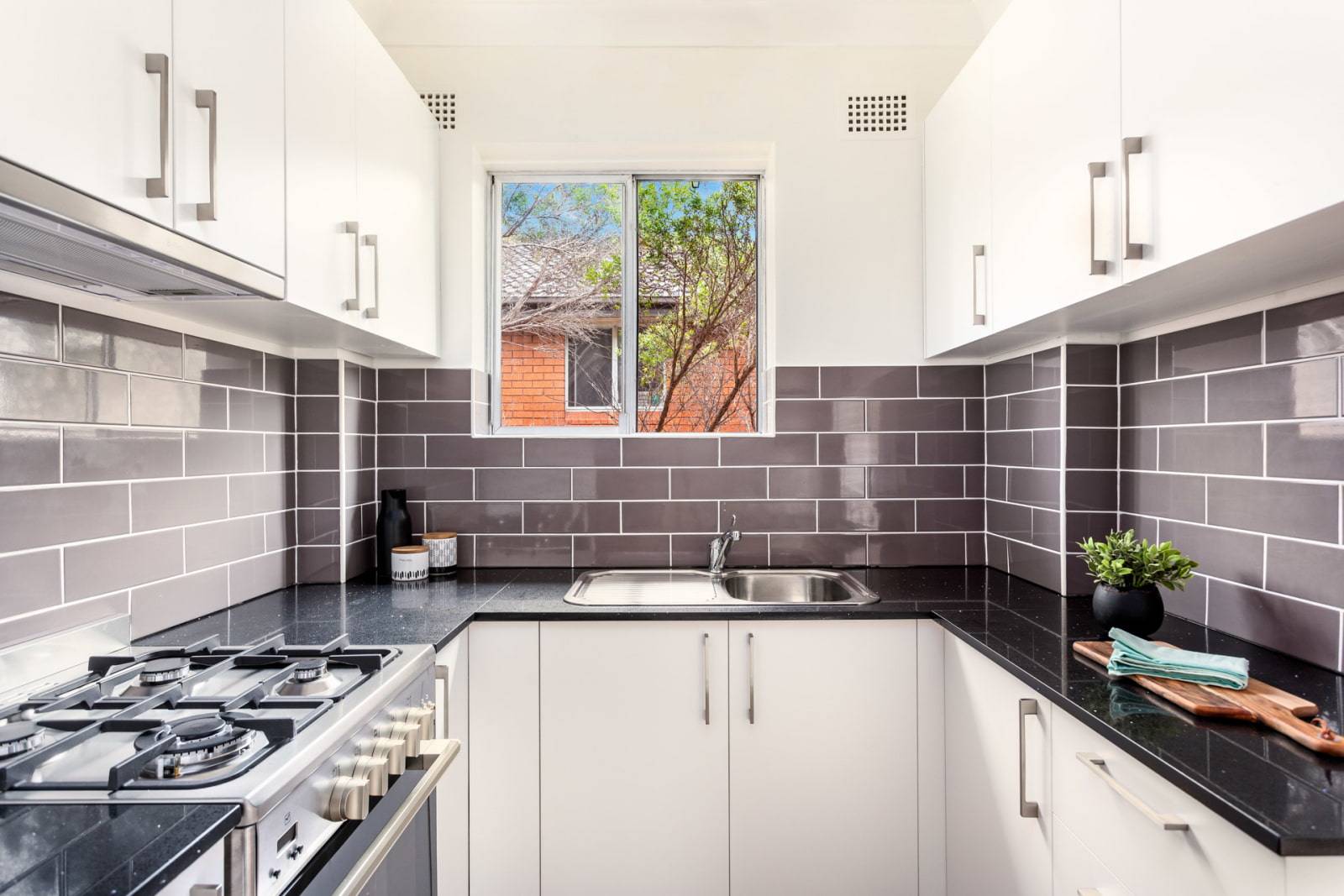 На фото кухня с рабочей зоной, выложенной плиткой коричневого оттенка с белой фугой.