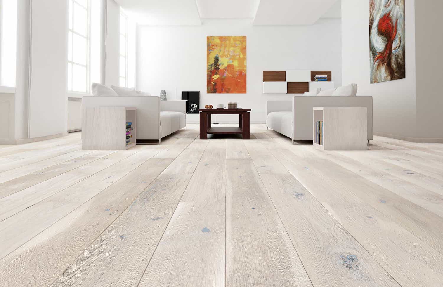 Белый (светлый). Символизирует чистоту, свежесть, лаконичность, безмятежность. Светлый ламинат с легкой древесной структурой превосходно гармонирует с более насыщенным оттенком стен или мебели, усиливая его яркость. Подходит для небольших комнат, так как позволяет визуально расширять пространство. Для больших помещений при желании обращаются к более сглаженной белизне, например, на пол укладывают ламели кремового или молочного тона.