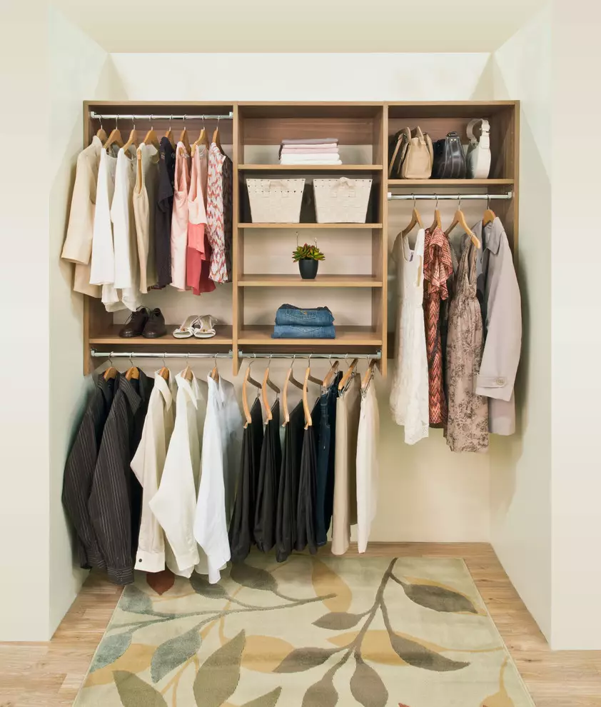 Помните: полок и ящиков в гардеробной должно быть в три раза меньше, чем секций со штангами и вешалками, — это поможет продлить срок службы вещей, и поддерживать их презентабельный вид.