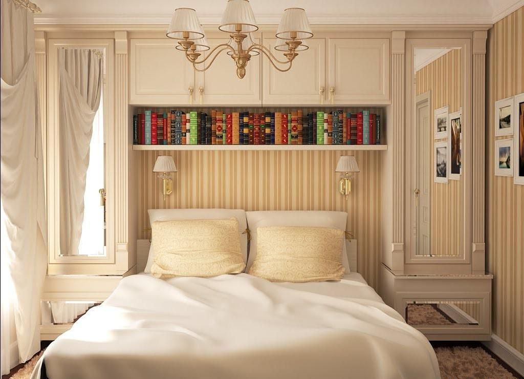 Пространство сэкономлено за счет шкафа в форме буквы «П» над изголовьем кроватиИсточник mydizajn.ru