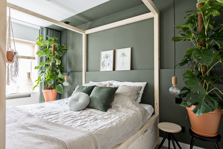 Темная вставка над кроватью может быть причиной давящей атмосферы.