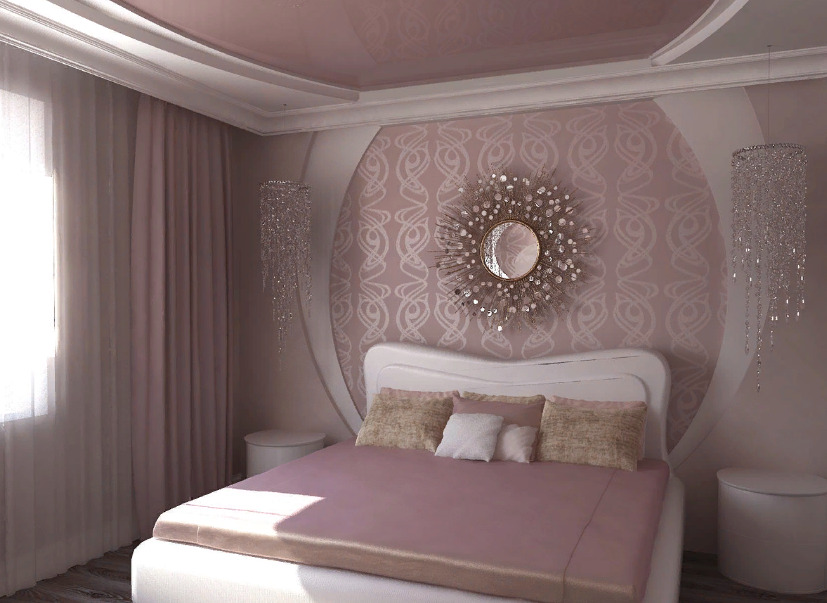 Зеркала. Без зеркал в спальне обойтись просто нереально, тем более, когда разрабатывается дизайн спальни 9 кв м. Отражающие поверхности способны подарить вашей миниатюрной спаленке солидный объем. Самый простой вариант это установить шкаф-купе с зеркальными дверями. Наклеить зеркальные вставки на потолок можно, но лучше смонтировать глянцевый натяжной потолок;