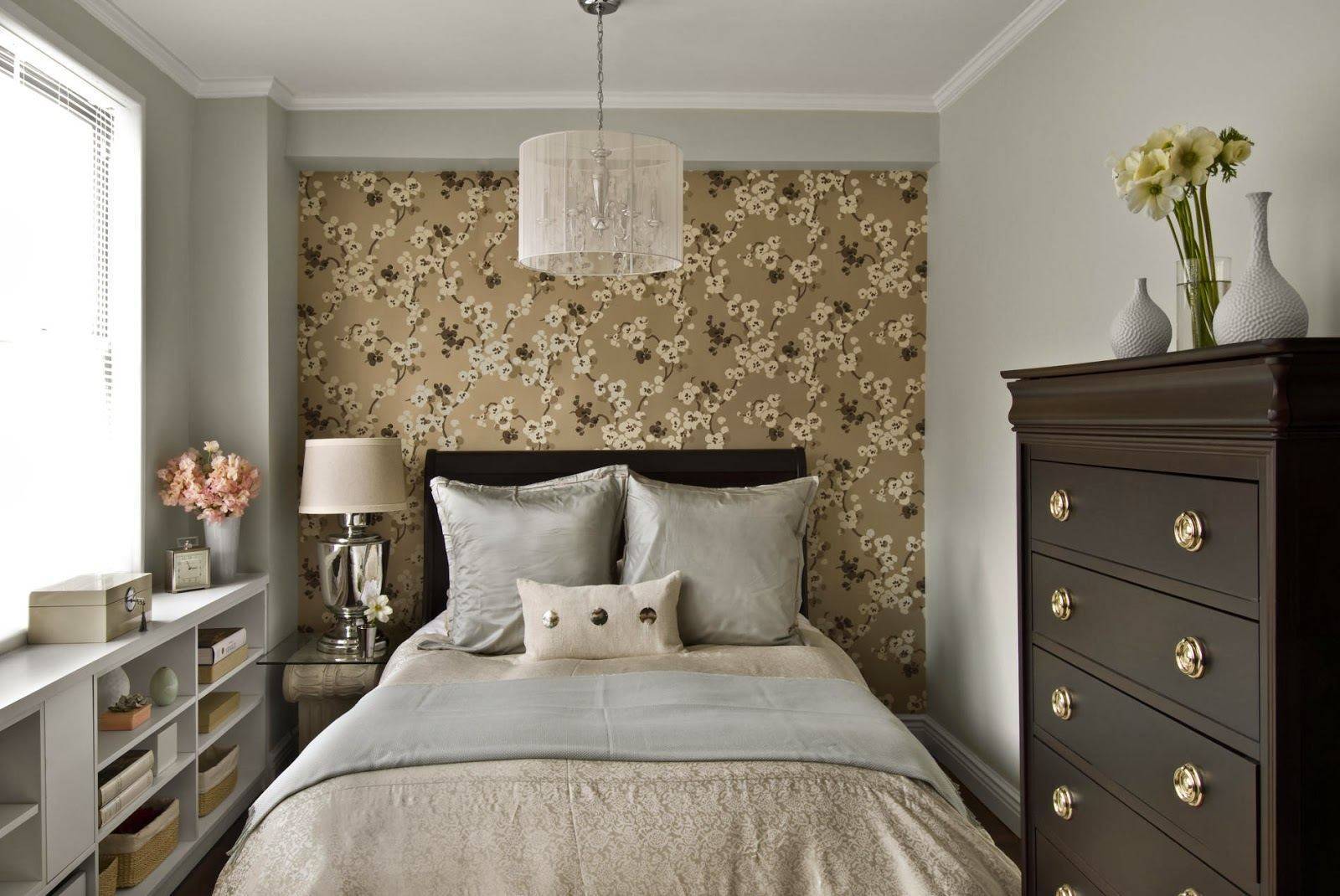 7. | Нежная пастель, жемчужный и туманно-серый. | Идеальное решение для маленькой спальни. Если комната светлая, то можно выделить одну из стен темными обоями с геометрическим орнаментом. |