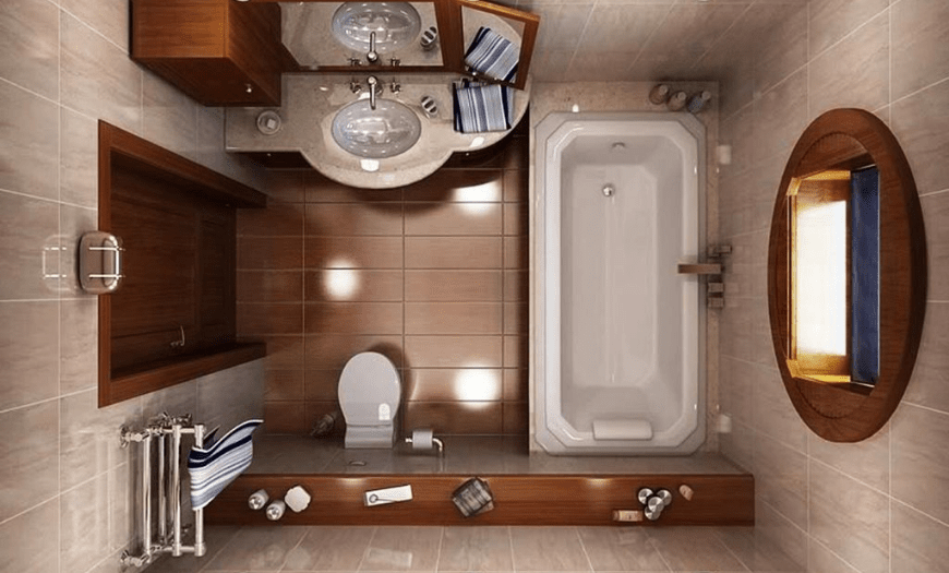 - правильно располагайте сантехнику. Если правильно расположить унитаз, настенный шкафчик или полку и другие элементы интерьера, то можно освободить довольно большое количество пространства. В противном случае вы просто загромоздите комнату и пользоваться ею будет очень неудобно;