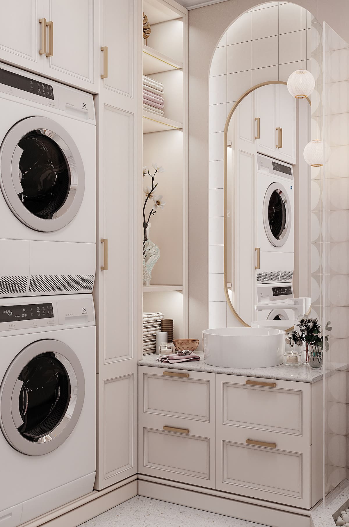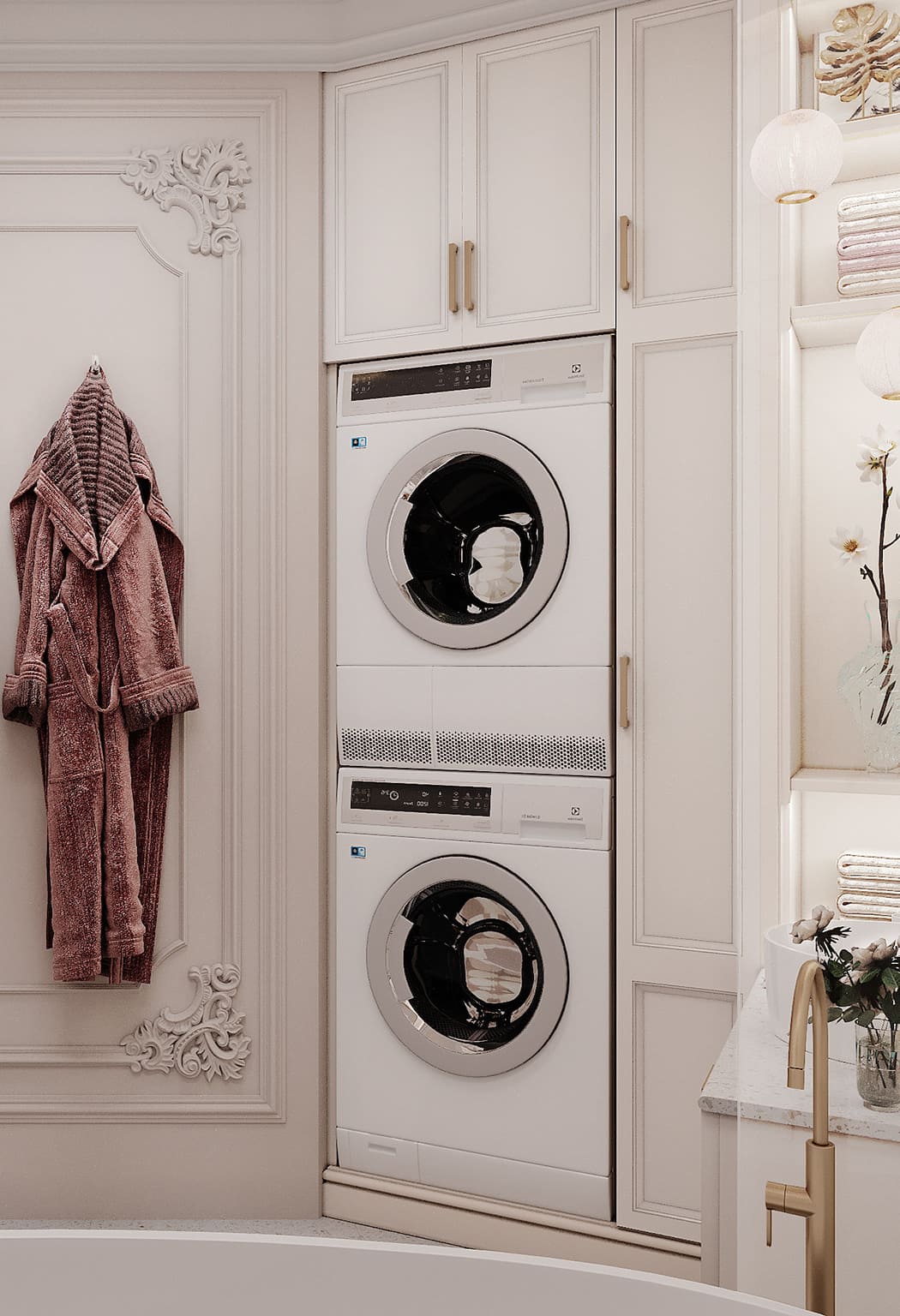 Тут устанавливается шкаф, стиральная машина, корзину для белья.