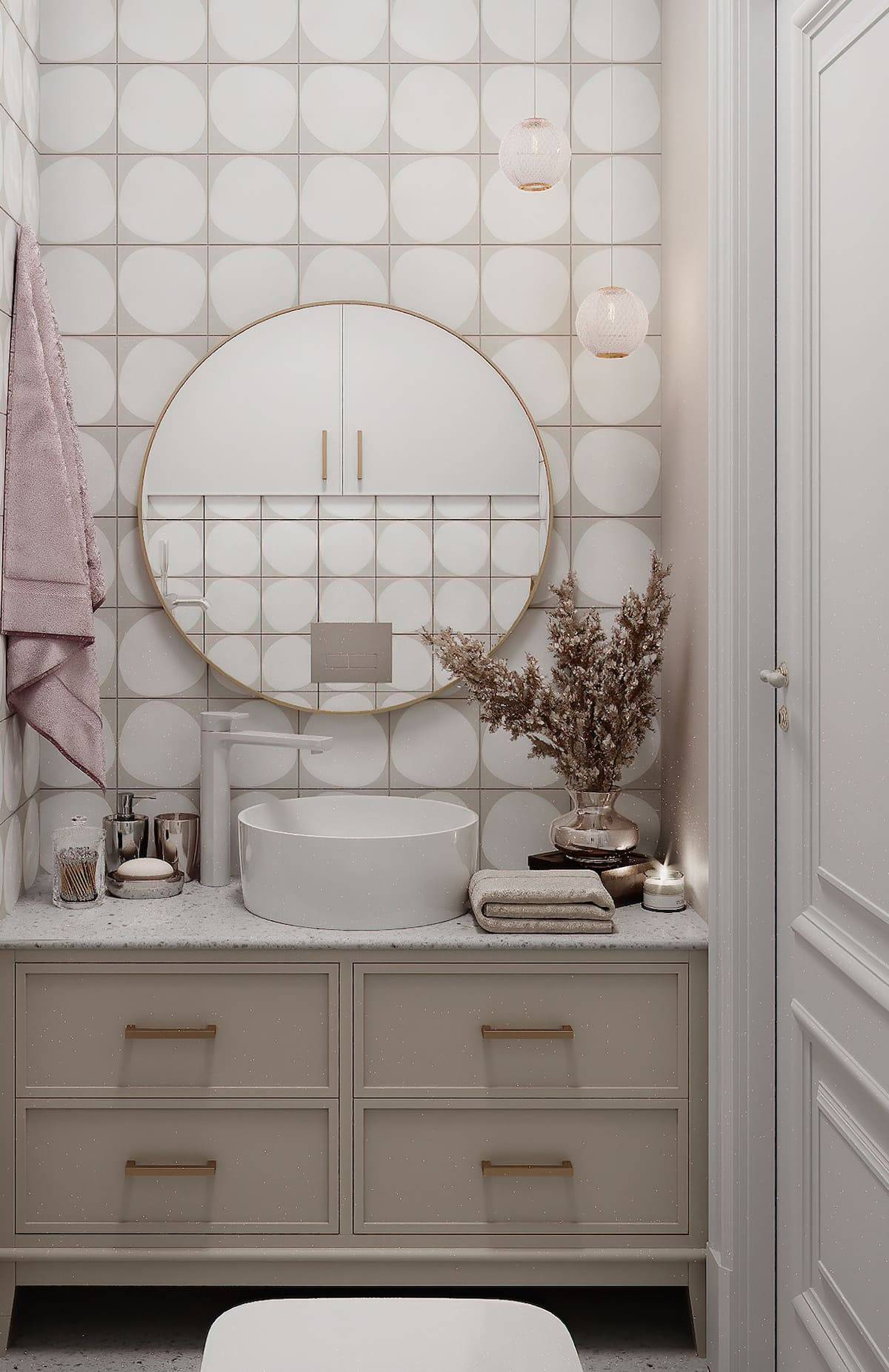 Для маленького помещения выбирайте мебель и плитку светлых тонов и с однородной, гладкой текстурой. Блестящие материалы – еще одна прекрасная идея для зрительного увеличение пространства. Они работают так же, как и зеркало, отражая свет и, тем самым, осветляя комнату.
