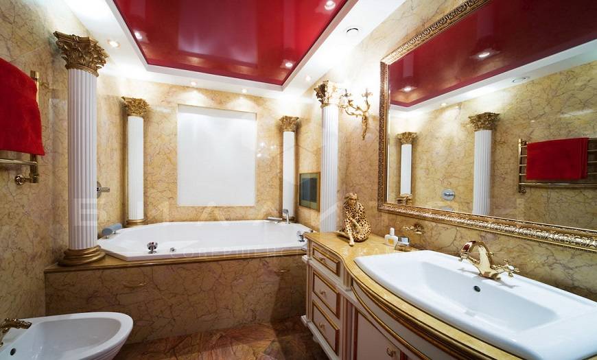 Благодаря своим качествам натяжные потолки отлично подойдут для ванной комнаты
