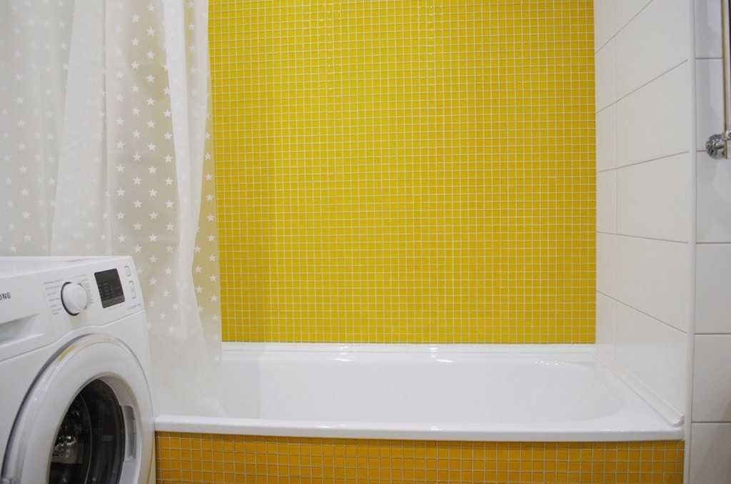 Этот способ дизайна ванной комнаты в квартире-хрущевке со стиральной машиной — скорее, экстремальный, чем общепринятый, но вполне осуществимый при правильном подходе