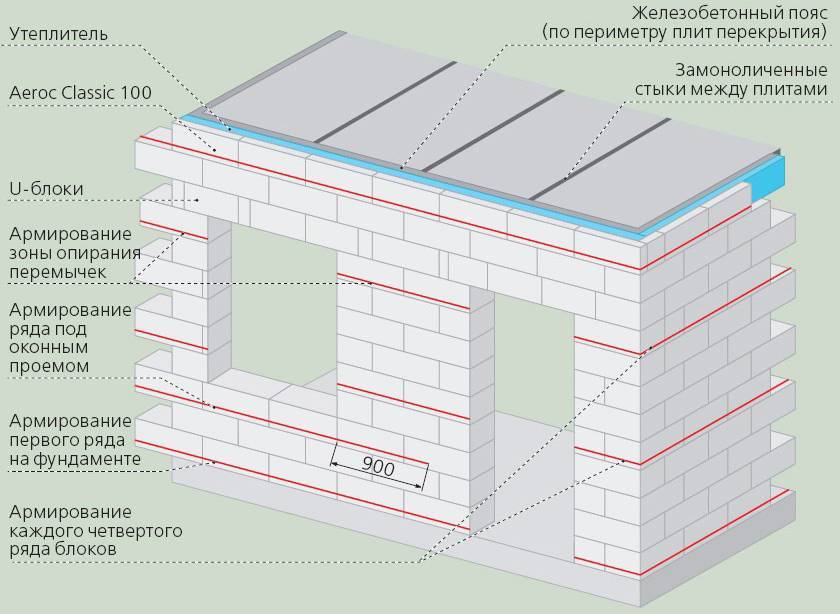 - газосиликат плохо переносит растяжение – нужно использовать армированный пояс;
