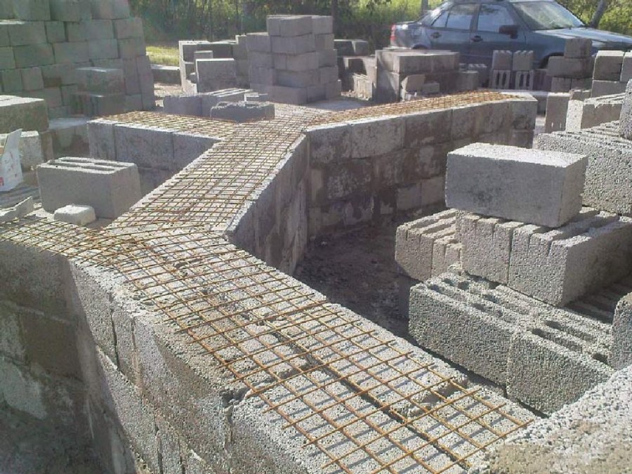В силу этого трудоемкость работ намного меньше, особенно это важно, если строите коробку своими руками. Очевидно, что любой фундамент имеет арматурный пояс, также при закладке раствора надо предусмотреть установку вертикальных стержней, которые прочно свяжут стены с фундаментом