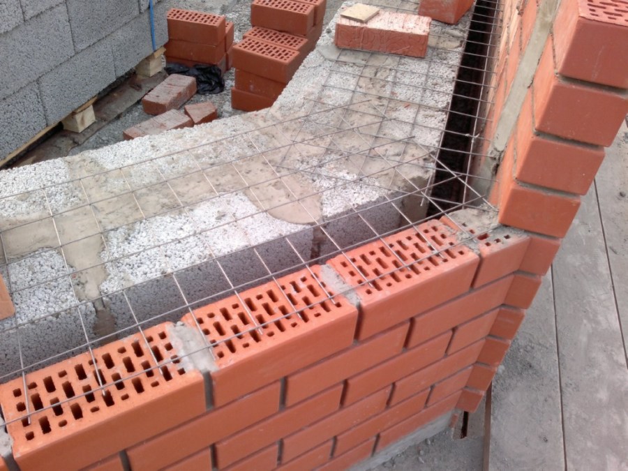 Непосредственно возводить стены необходимо с соблюдением правил перевязки, которые предполагают обязательное смещение следующего ряда минимум на треть длины блока, по отношению к предыдущему. Также для обеспечения жесткости конструкции следует выполнять армирование кладки, приблизительно каждые 3-4 ряда – в зависимости от этажности дома, а, следовательно, от предполагаемой несущей нагрузки.