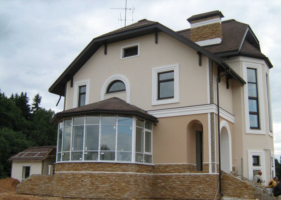 Для отделки дома из керамзитобетонных блоков можно использовать самые разные материалы. Одним из популярных вариантов является штукатурка, выполненная способом «мокрый фасад». В этом случае утепление керамзитобетонных стен можно выполнить при помощи пенополистирола или пенопласта, а также материалов на основе минеральной ваты.