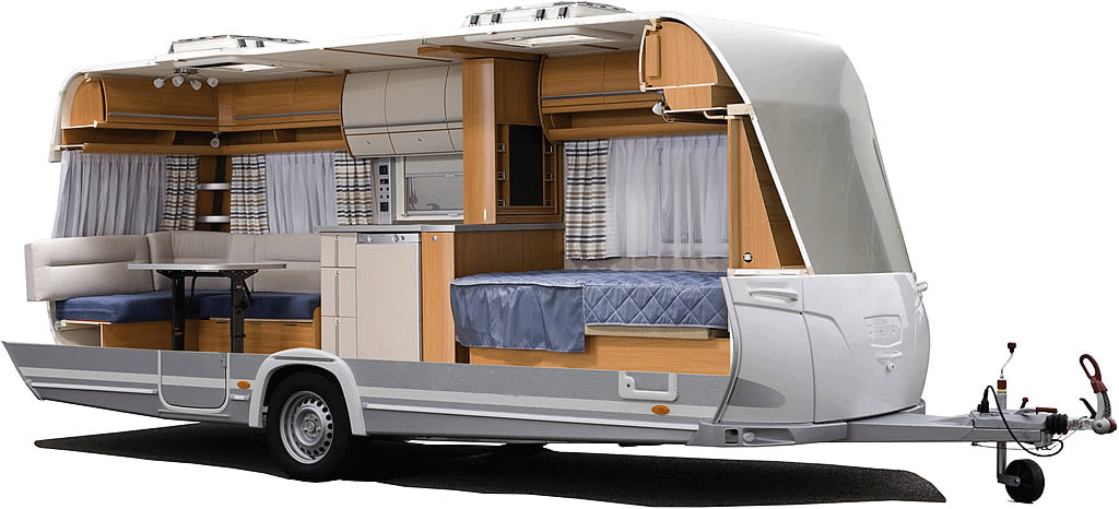Это оборудованный жилой автодом с максимальным внутренним оснащением, который цепляется за легковой автомобиль. Как правило, внутри него есть кухня, спальня, гостиная, санузел, душевая. Все это возможно разместить при помощи многофункциональной трансформируемой мебели, а также грамотной планировке.