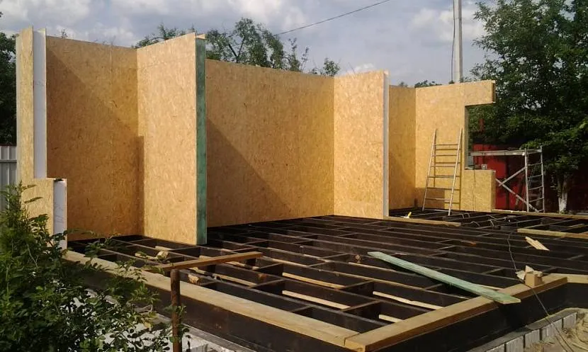 Самым удачным вариантом для обшивки являются плиты OSB. Есть и другой вариант — сборные щиты, которые уже оснащены гидроизоляцией и утеплителем. Но он дороже и сложнее в исполнении, требует спецтехники и инженерных знаний. Можно использовать сэндвич-панели, которые по сравнению с кирпичным строительством экономичнее в 10 раз.