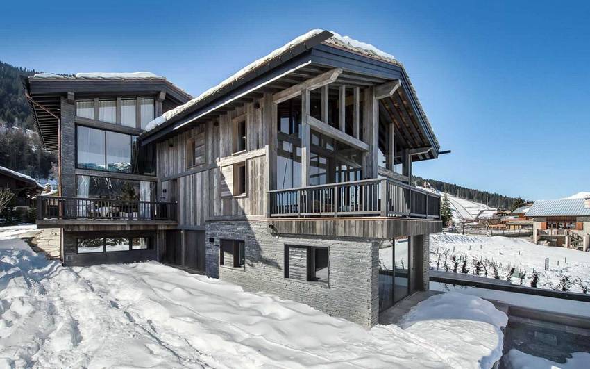 Шале 21-го века привносят романтичность в очень традиционной форме, подчеркивая монументальную крышу и богатую материальность древесины, белой штукатурки и бетонного интерьера, с этими бликами и открытым огнем.