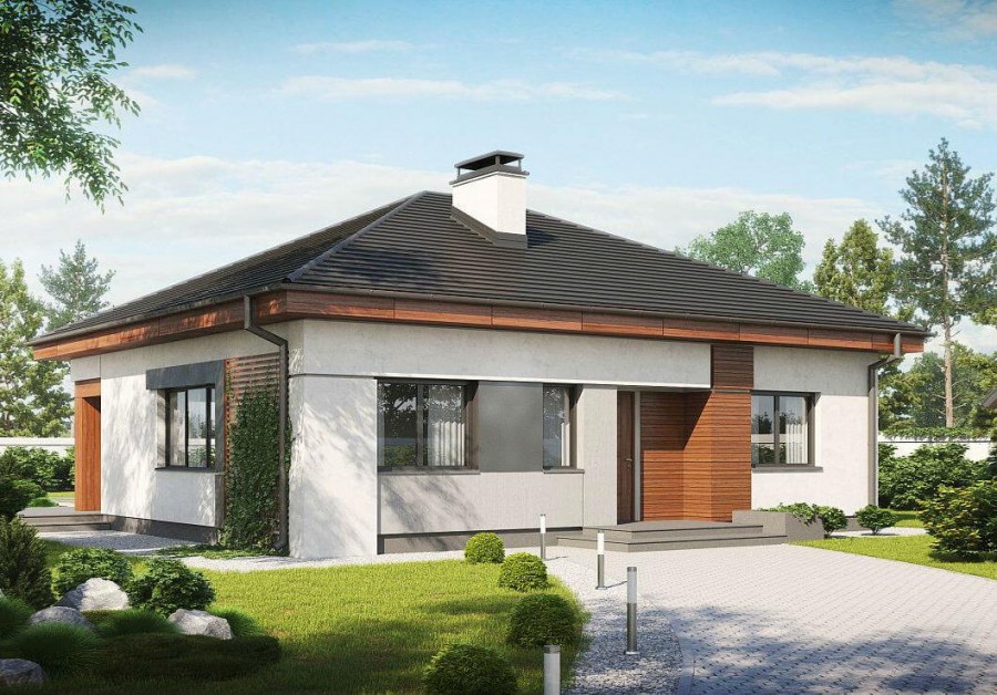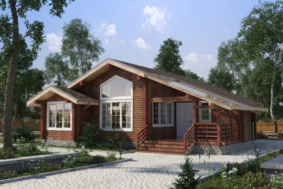 Оформление фасада одноэтажного дома деревянным сайдингом Источник podryady.ru Чтобы возвести дом в один этаж, не следует использовать специальную технику. Поэтому если на территории уже организован какой-то ландшафтный дизайн, его всегда есть возможность сохранить.