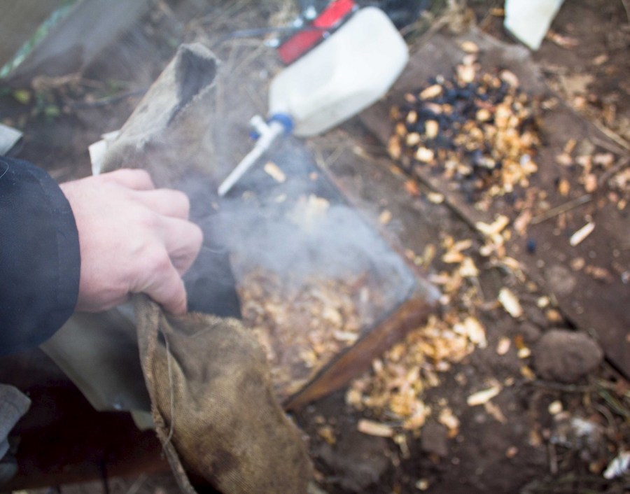 Простейший открытый дымогенератор — это костерок, сложенный из дров, то есть из коптильного материала повышенной влажности (40-70%). Правда, сегодня такой дымогенератор уже не удовлетворяет медико-санитарным требованиям. Дрова в нем сохнут, вспыхивают, горят. Приходится постоянно обкладывать очаг свежими листьями, дерном, травой. А значит ПАУ будет просто зашкаливать в готовом продукте копчения.