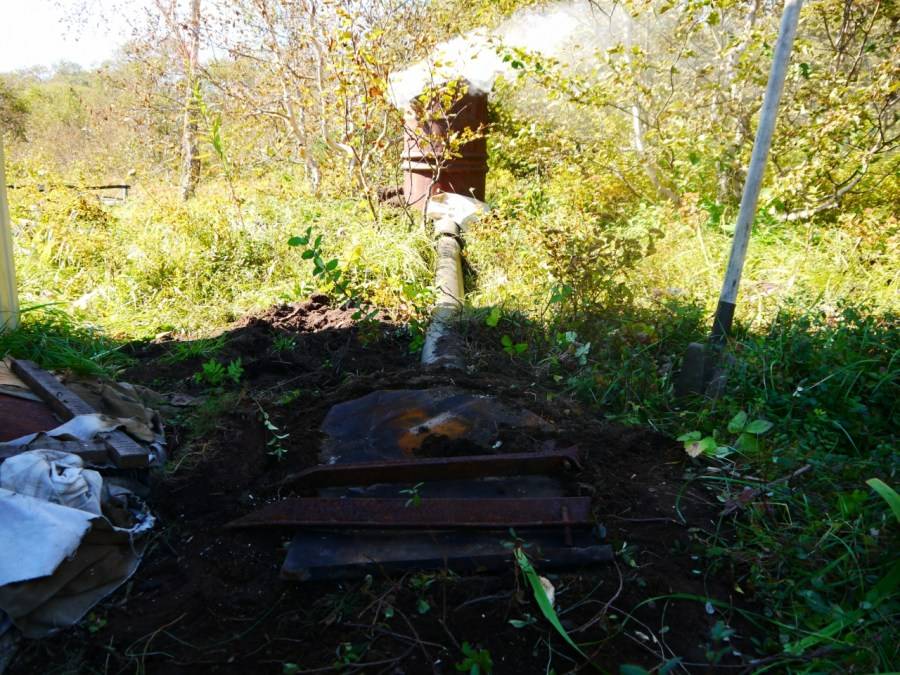Дверку на топку нужно изготовить чугунную и надежно закрывающуюся. Ее основание делают из кирпича, а стены выводят немного вверх над землей. Затем на него ставится деревянная конструкция. Траншею, где находится дымоходная труба, засыпают землей, а затем хорошо трамбуют. Это необходимо для того, чтобы труба и дым охладились.
