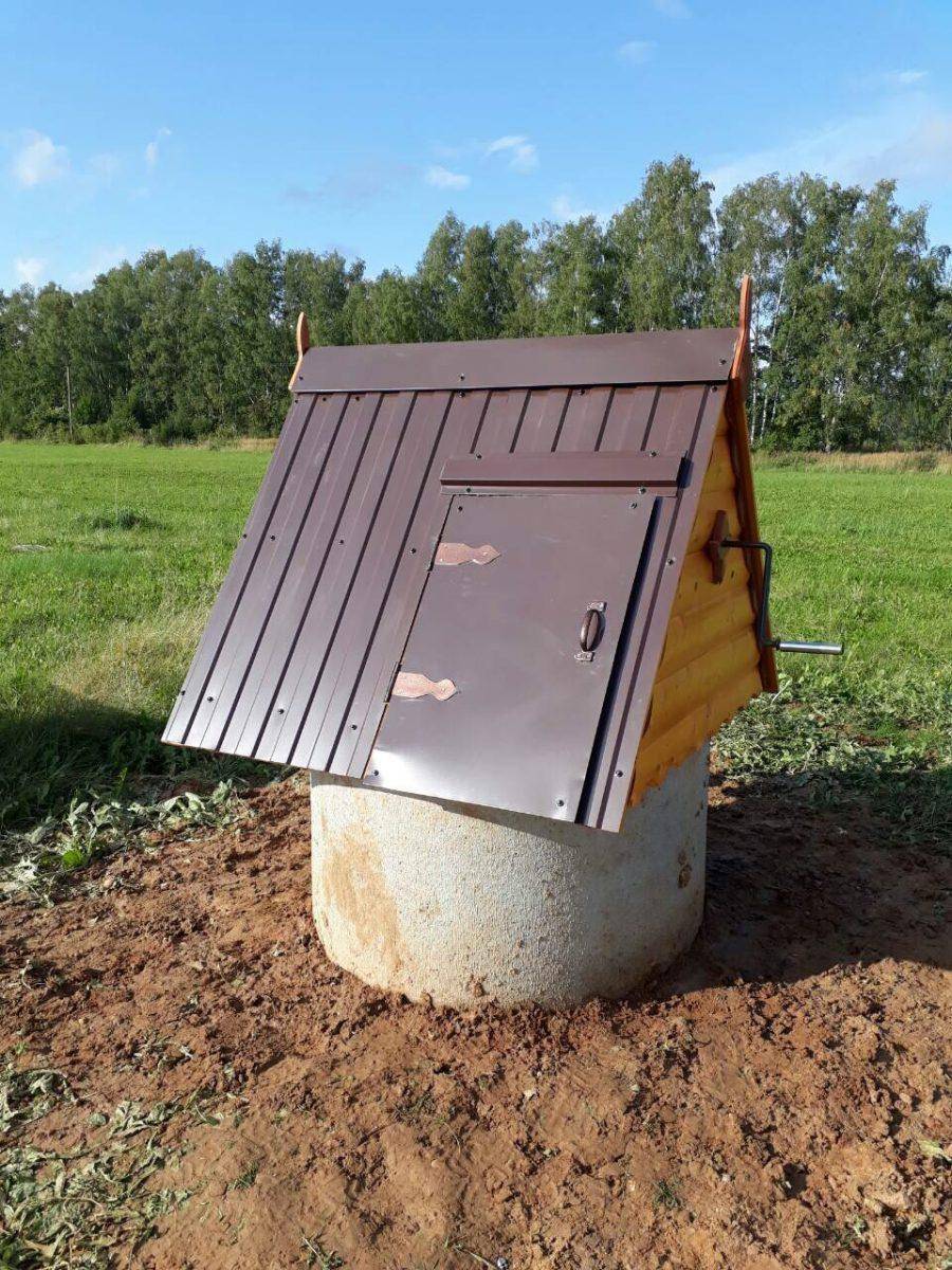 Допускаются различные формы конструкций для колодцев. Они могут быть в виде простого щита, накрывающего верх шахты колодца или выглядеть как домик из сруба. Крыша обычно двускатная, односкатная или в виде зонта. Угол наклона кровли может быть пологим или острым. Дверцы принято располагать с одной или с двух сторон. Они могут быть одностворчатыми, двустворчатыми, сплошными или раздвижными панелями.