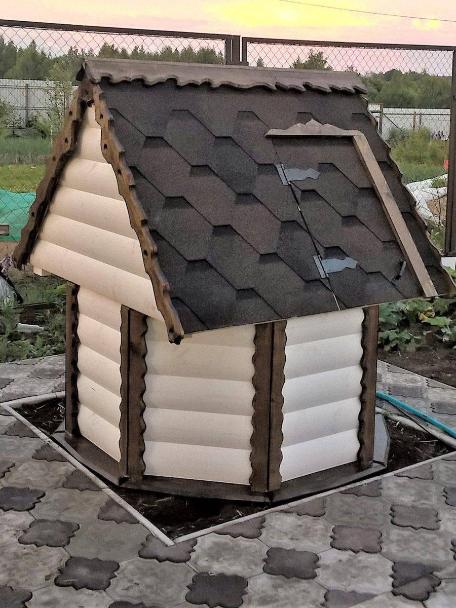 На фото: полная обшивка колодца и вправду делает конструкцию похожей на домик