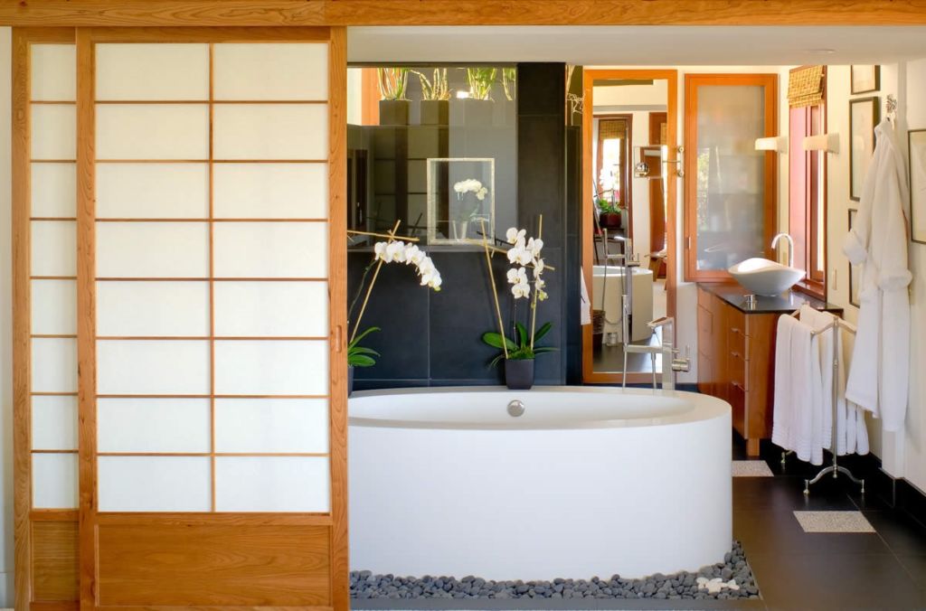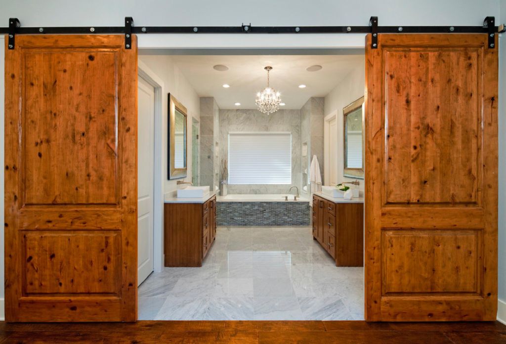 На самом же деле, деревянные двери из массива – одно их лучших решений для интерьера ванной комнаты