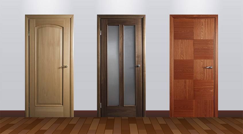 Первый тип изготавливается из разных пород дерева. Самыми ценными являются изделия из дуба. В то же время они достаточно тяжелые и дорогие. Данный материал отличает высокая прочность и долговечность. Также используют ясень, ольху, орех, сосну, граб, акацию и другие породы дерева. Межкомнатные конструкции могут быть из цельного массива или клееного бруса.