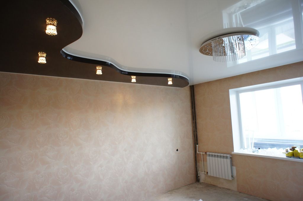 Для двухуровневых натяжных потолков допускается использование материалов обоих типов.