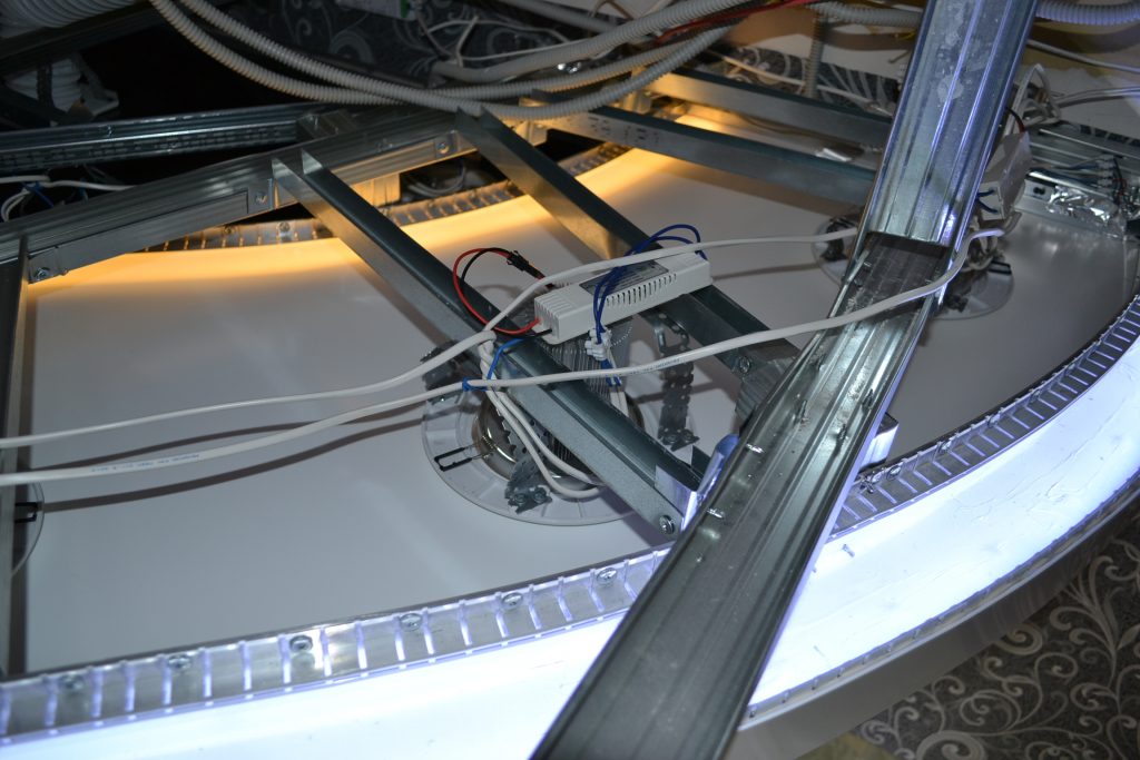 - Попутно маскируется вся электропроводка и точки установки светильников.