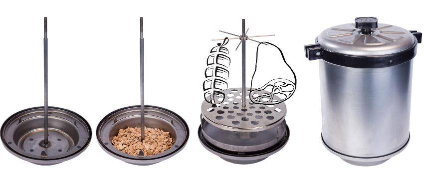 - легкий дымогенератор 1,2 кг и общая емкость для копчения 3,7 кг позволяют переносить и устанавливать его любому члену семьи;