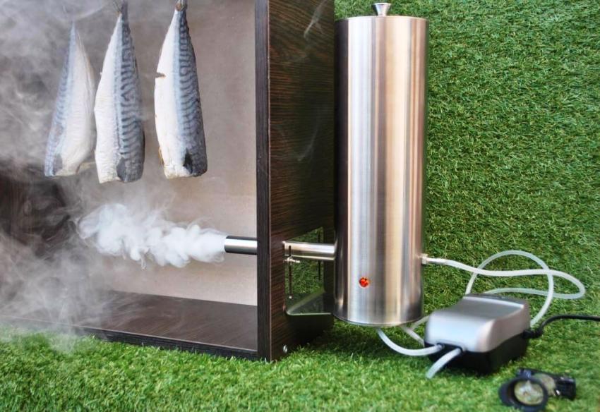 Сейчас вместо очага используется дымогенератор — устройство, вырабатывающее дым и подающее его в коптильную камеру. От его температуры и состава зависит вкус копчёностей.