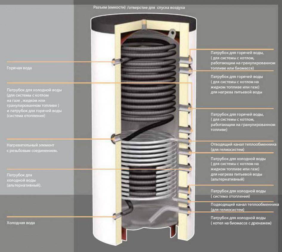 - Емкость для косвенного нагрева. Отвечает за нагрев теплой воды.
