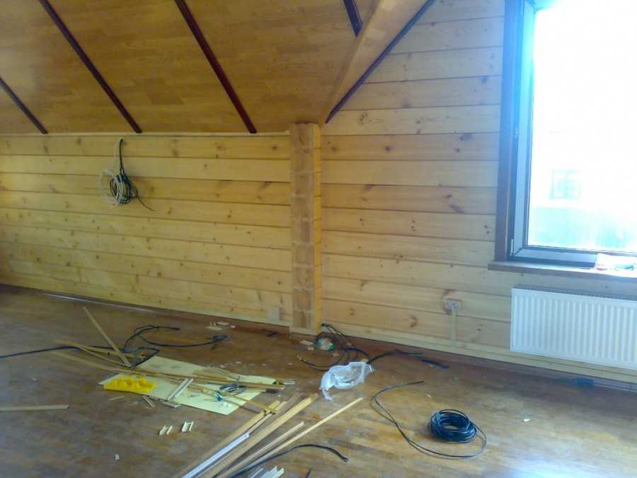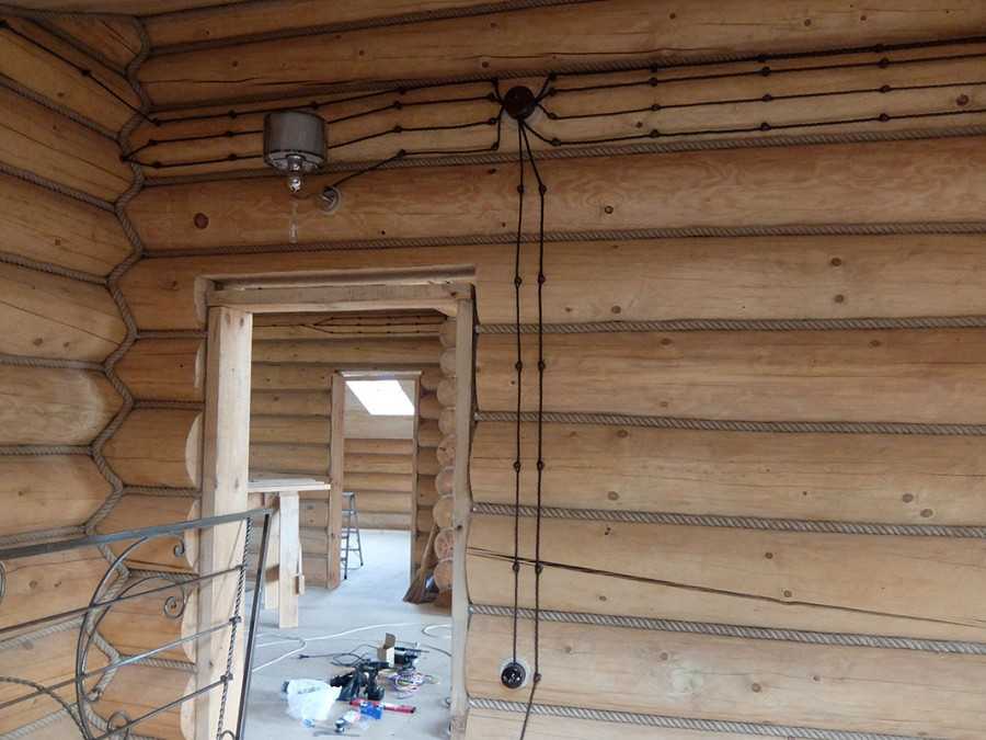 - Если стены деревянные, лучше смонтировать проводку открытого типа.