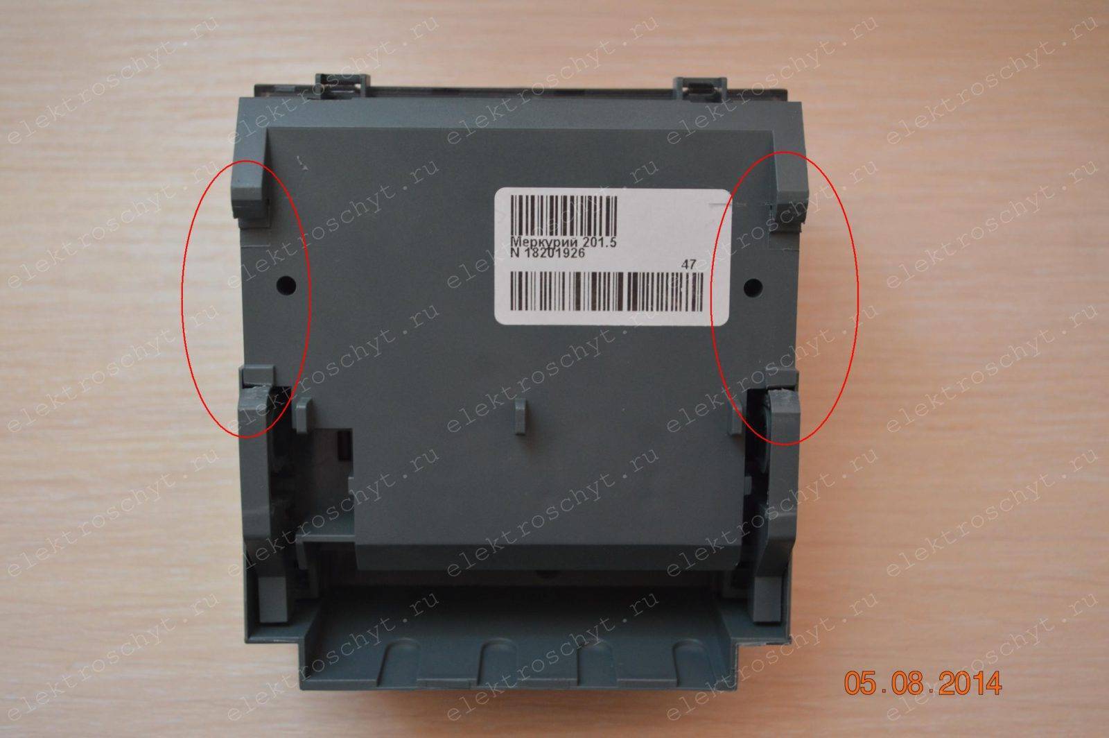 так и просто прикручиваться на заднюю стенку электрощитка при помощи переходной пластины, которая в свою очередь вставляется в зажимы под дин-рейку. Данная пластина достаточно крепко “держит” счетчик Меркурий 201.