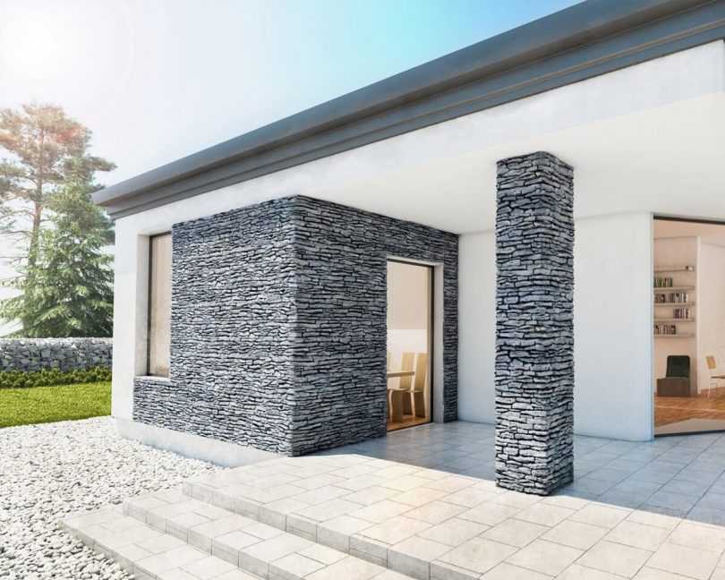 Это бюджетное решение для недорогой, но качественной облицовки. Структура камня и его рисунок создают неповторимый дизайн. Этот материал пользуется большим спросом. Благодаря инновационным технологиям производителям удалось создать искусственный камень, который по своим характеристикам ничуть не уступает натуральному аналогу. Данный вариант приобрел большую популярность среди владельцев жилых домов, строителей и дизайнеров.