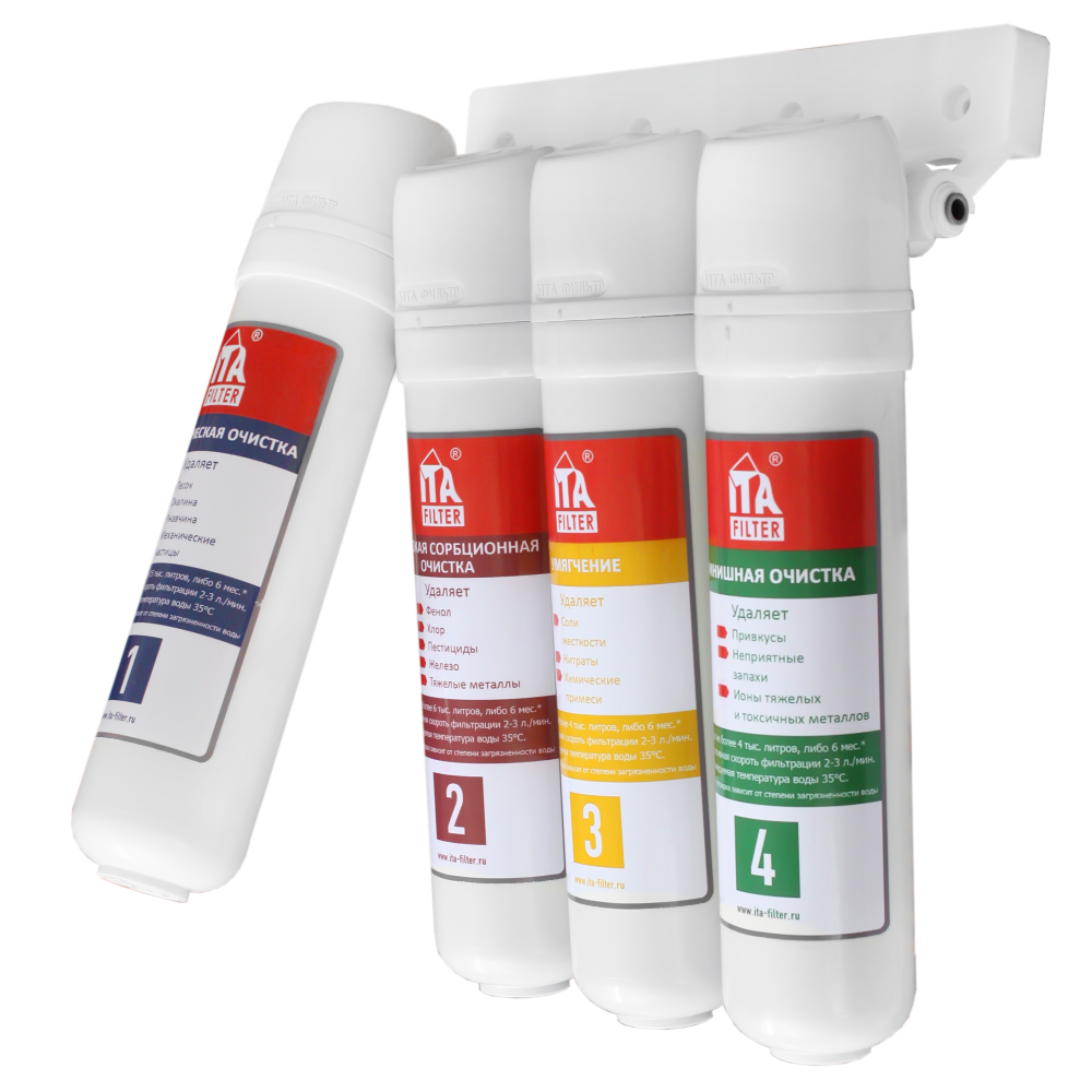 Эти устройства являются самыми простыми и не слишком дорогими. Это несколько емкостей, как правило 3-4, которые последовательно соединены между собой. А внутри них располагаются специальные картриджи, оснащенные фильтрами. Такие устройства подключают к водопроводу с помощью гибкого провода. Самым удобным местом для этого является пространство под раковиной. А сверху к нему можно прикрепить специальный кран.