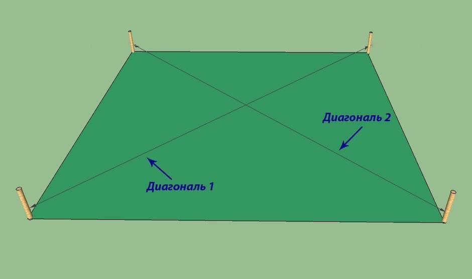 После этого нужно соблюдая точность установить еще четыре колышка. Необходимо проверить точность диагоналей внешних стен бани. Если все верно, то переходим к разметке внешних стен бани.