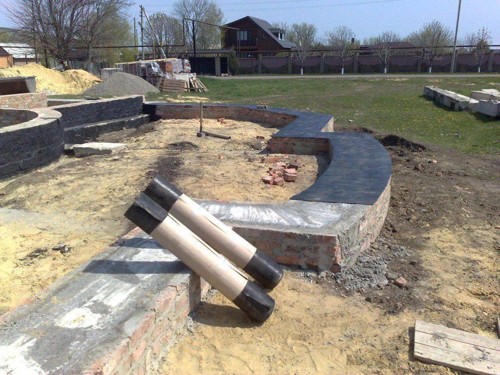Шаг 3. На ровную ленту положите два слоя рубероида для гидроизоляции кирпичей
