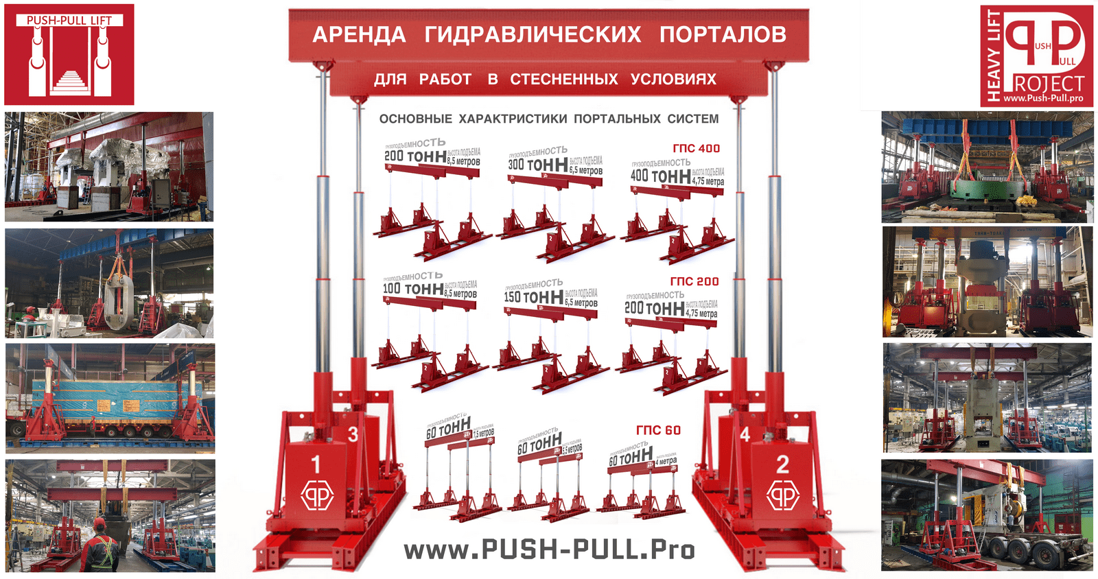 Грузоподъемность Гидравлических Портальных Кранов составляет от 10 до 1100 тонн.