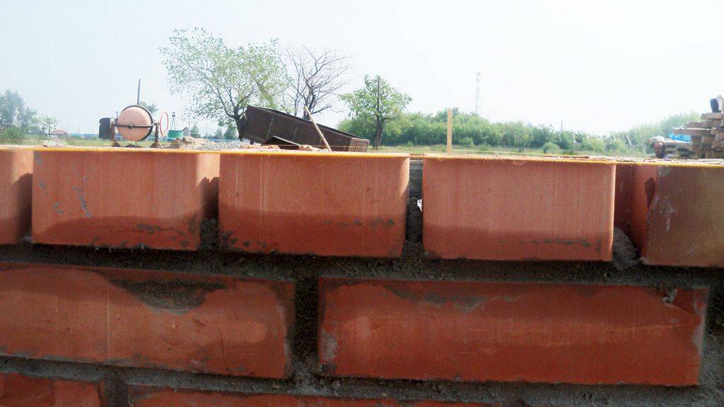 Затем в ямах нужно выложить столбы. Через каждые 4 ряда кирпичей кладут армирующую сетку, сделанную из проволоки 5-6 мм.