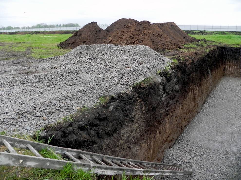 На этапе снятия слоя почвы удаляют сор, камни, сорную траву. Если поверхностный слой почвы плодородный, не рекомендуется разбрасывать его вдоль площадки, где ведутся строительные работы. Здесь будут прорастать сорняки. Такую почву лучше использовать для обустройства грядок и клумб.