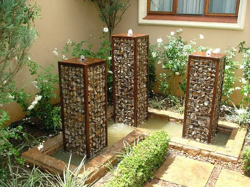 Поверх ландшафта можно создавать из габионов клумбы своими руками, а также водопады, искусственные водоемы, фонтаны и прочее.