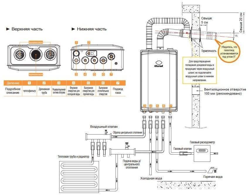 Схема подключения двухконтурного газового котла к системам водоснабжения и отопления