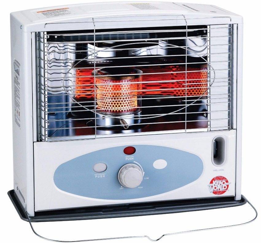 Бюджетный обогреватель, который лучше всего подойдет для отопления небольших помещений площадью до 15 квадратных метров. Мощность – 1,5 кВт. Расход топлива – всего 0,11 кг/час. Вес прибора – всего 1,8 кг. Цена – от 2000 рублей.