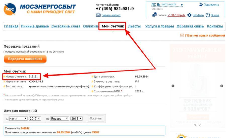 Кроме бумажной квитанции, номер должен указываться на персональной странице сайта потребителя. Для этого владельцу необходимо пройти несложную процедуру регистрации. В результате он получает доступ и данным по потреблённым объёмам энергии, размеру задолженности. В дополнение к персональным данным, на странице указывается серийный номер прибора учёта.