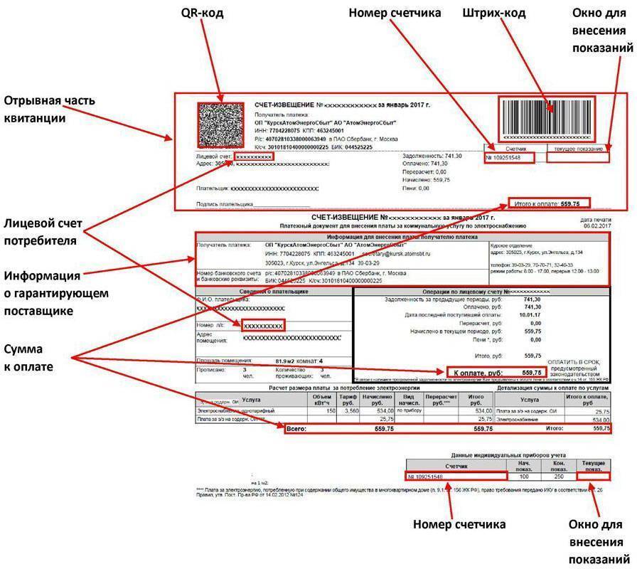Выписывая квитанцию за потреблённые энергоресурсы, поставщик указывает в документе не только объём израсходованной энергии, но и данные потребителя и прибора учёта, включая серийный номер электросчётчика.