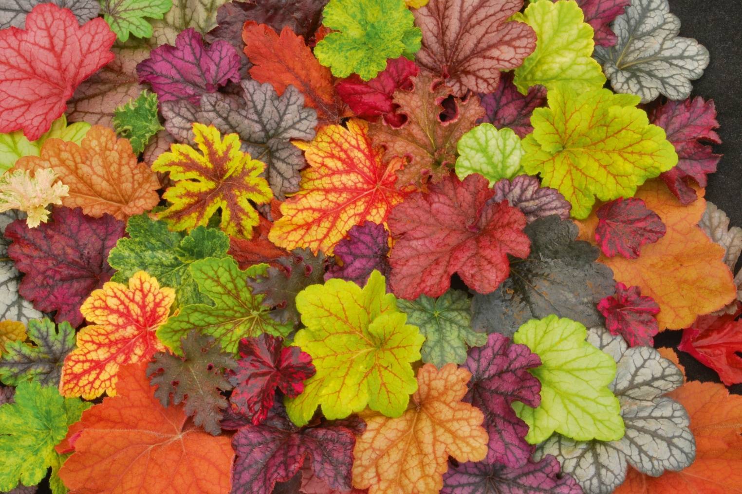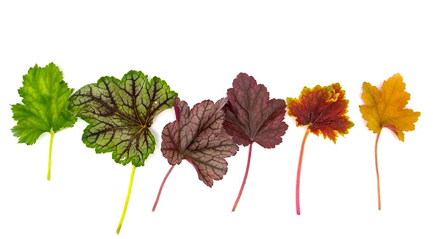 Разнообразие окрасок и форм листьев гейхеры